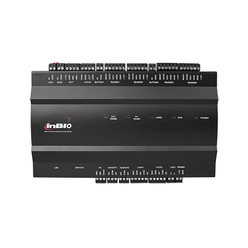 InBIio460四門控制器是全球第一款在硬件平臺/固件平臺/應用軟件平臺將RFID與BIOMETRIC技術無縫整合, 采用32位400MHZ高速并行CPU,嵌入式Linux操作系統,該控制器設計為TCP/IP和RS485雙通訊模式,并支持復雜網絡的跨網段、跨網關通訊,與后臺管理系統連接,通過它可以將輸入設備、輸出設備和讀卡器連接起來組成一個完整的控制系統。InBIO 160單門控制器采用行業公認要求最高的防塵、防靜電ABS+PC外殼,經歷了業界最嚴格的工業標準實踐和最苛刻條件的測試,性能穩定卓越。